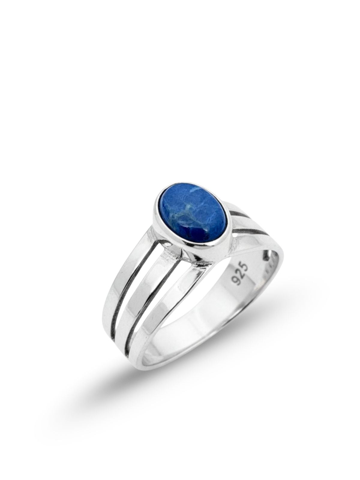 Doğal Lapis Lazuli Taşlı Gümüş Kadın Yüzük