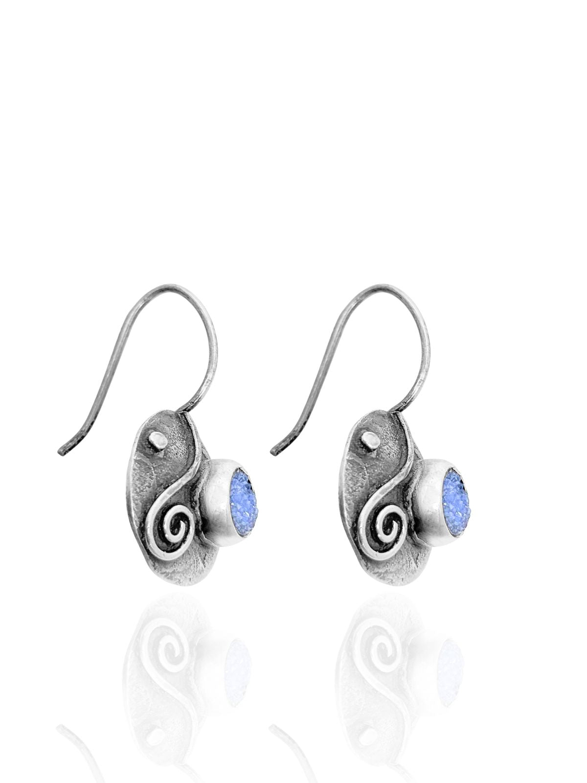 Doğal Selestit Taşlı Gümüş Kadın Küpe 2.8x1.6 cm