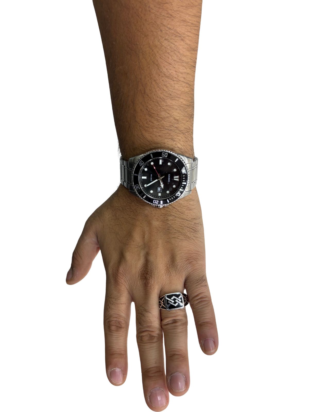 Siyah Mine Enchaîné Gümüş Erkek Yüzük