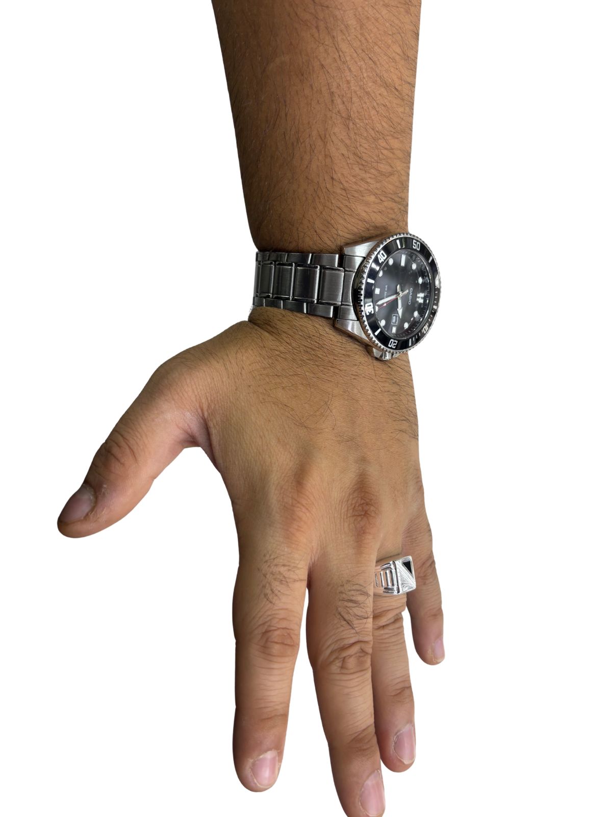 Kare Formlu Lazer İşlemeli Gümüş Erkek Yüzük