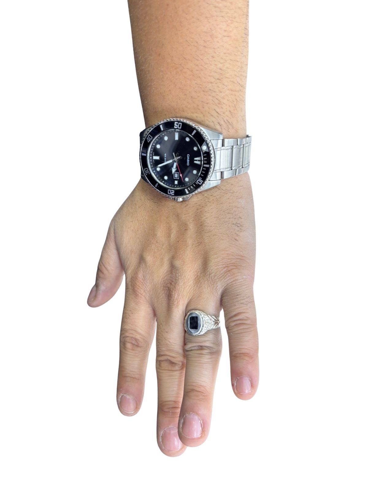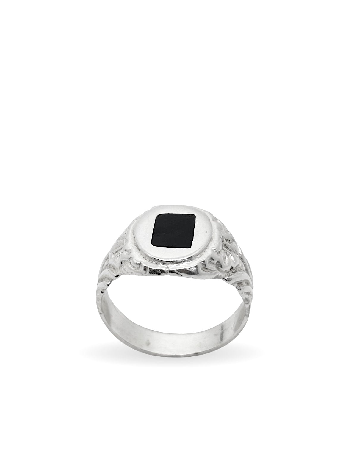 Yuvarlak form üzerine yerleştirilmiş dikdörtgen mine detayıyla dikkat çeken Yuvarlak Üzerine Dikdörtgen Mineli Gümüş Retro Erkek Yüzük, retro estetik ile modern çizgileri bir arada sunar. Siyah mine yüzey üzerindeki dikdörtgen alan yüzüğe güçlü, belirgin ve karakterli bir görünüm kazandırır.