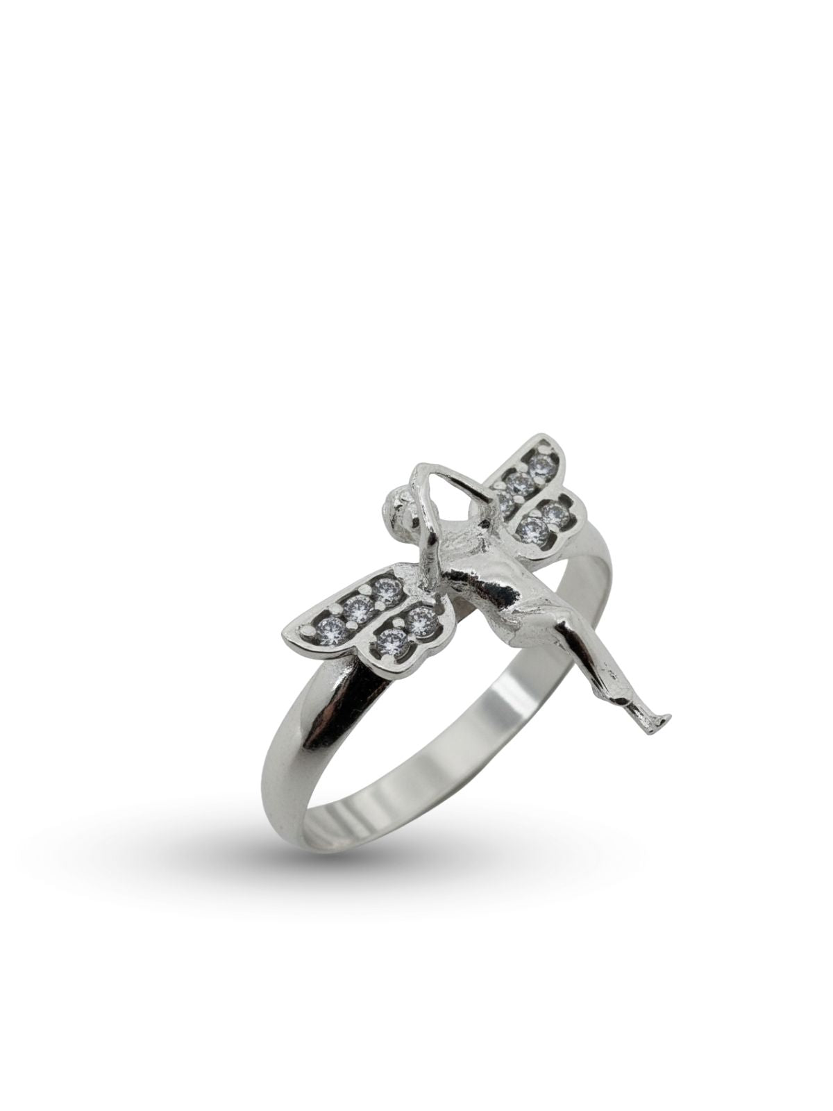 Zirkon Taşlı Melek Figürü Kadın Gümüş Yüzük